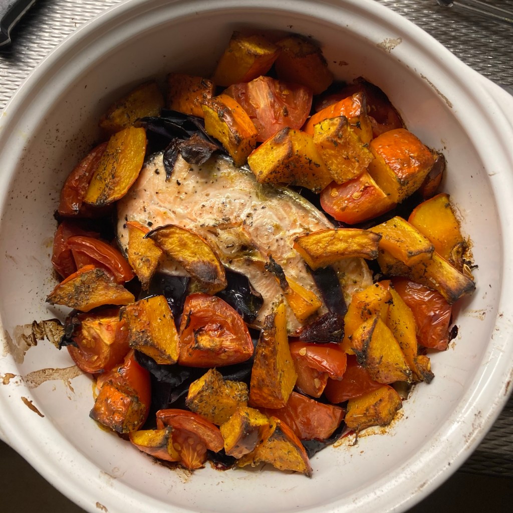Awakening this morning after a better night’s sleep than I’d had in weeks, felt like a reset, although I felt exhausted and looked pale for the rest of the day. The late afternoon brought solace, celebrating small gifts like enjoying the second serving of the oven dish I prepared last night: not having to cook, and eating my main meal well before evening gave me a relaxed belly and a feeling of lightness before going to bed.